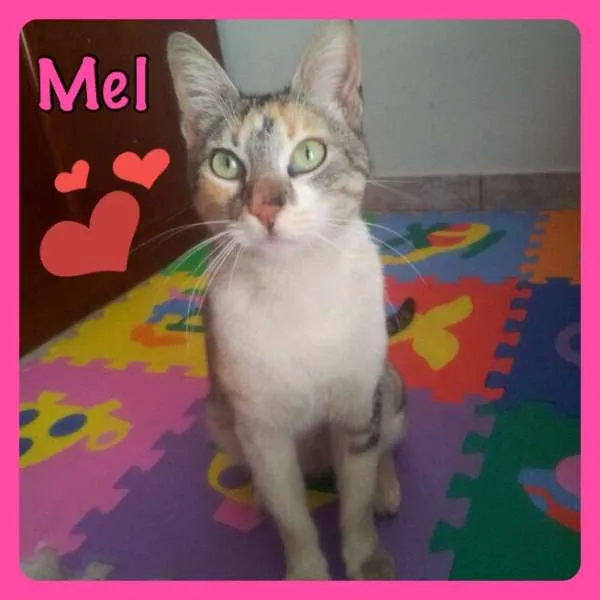 MEL é uma linda gata que está para adoção. Ela tem cerca de 1 ano. Possui temperamento dócil e está acostumada com humanos e com carinho. É bem meiga e doce, por isso se chama Mel. Ama comer ração úmida e já sabe afiar arranhadores.