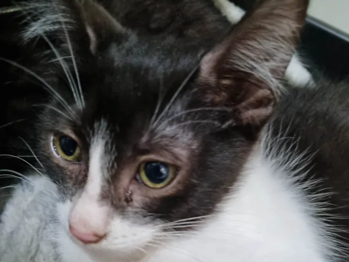 Encontre a sua nova amiga na adoção! Minie, gata SRD de 3 meses, saudável e amorosa, espera por você. Adoção com castração garantida.