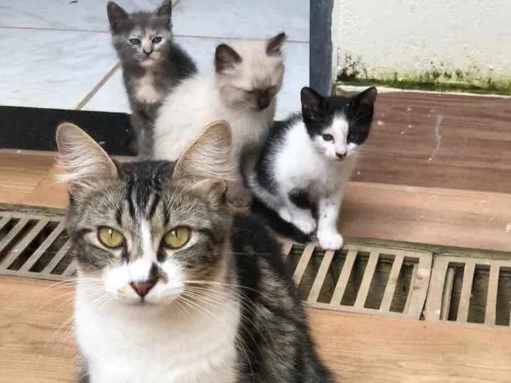 agora, os filhotes estão com 2 meses e ela castrada, prontos para uma adoção responsável. ficaremos muito felizes de encontrar um lar de muito amor para cada um deles.