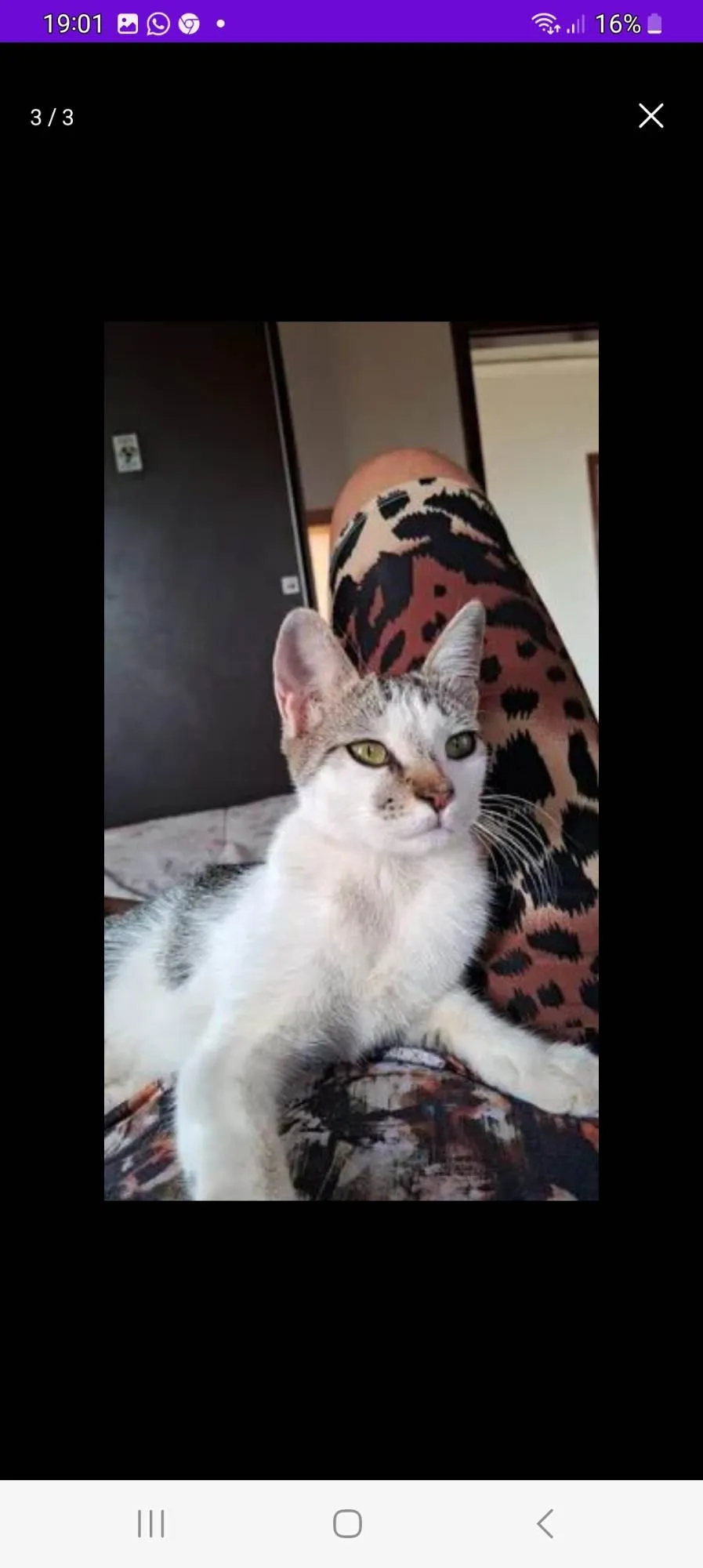 Gatinha muito esperta carinhosa rosna muito para uma adoção responsável por gentileza somente para quem realmente possa cuidar e dar amor e um lar seguro sem cachorros pois ela foi atacada por cachorros na rua ela sofre trauma de cachorros,castrei ela está super saudável *