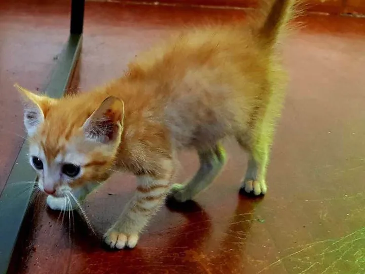 Pequeno macho, lindo, muito inteligente. Parece um pequeno tigre. Ganhamos ele, mas o nosso cachorro assusta muito ele. Por isso ele precisa de uma familia que possa cuidar dele