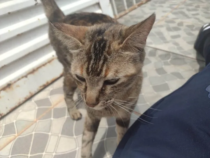 Gata caçadora, adora pegar os bichinhos. Estou doando pq infelizmente a alergia da minha filha e esposo piorou muito . Daí coloquei elas no quintal, mas com a chuva não tenho lugar de abrigo pra ela e a irmã.