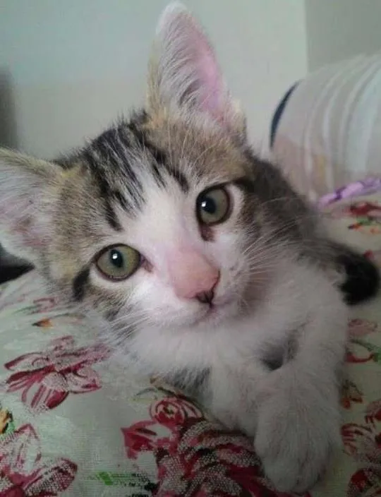 Encontrei esse gatinho e cuidei dele, pois a mãe não estava nem amamentando. Hoje ele já come ração, usa a caixinha de areia e está vermifugado. Ele adora brincar e dormir comigo no sofá.