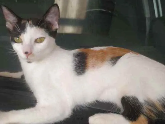 Fui resgatada quando era bem pequena. Eu estava no motor de um carro e depois me colocaram no meio do asfalto! A Branca viu e me salvou. Desde então, ela cuida de mim, mas preciso de um lar definitivo.