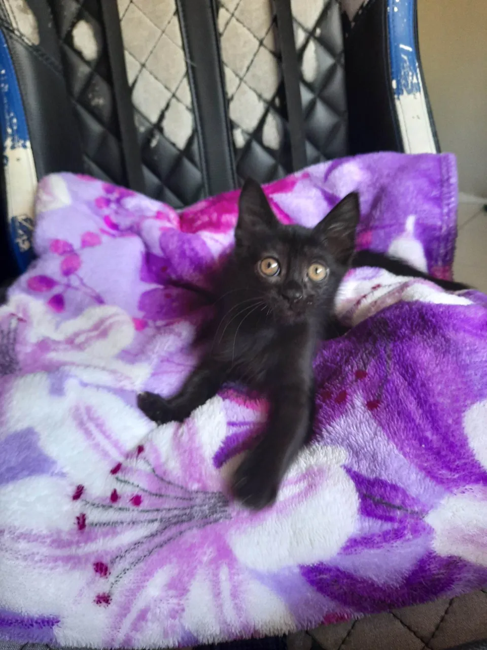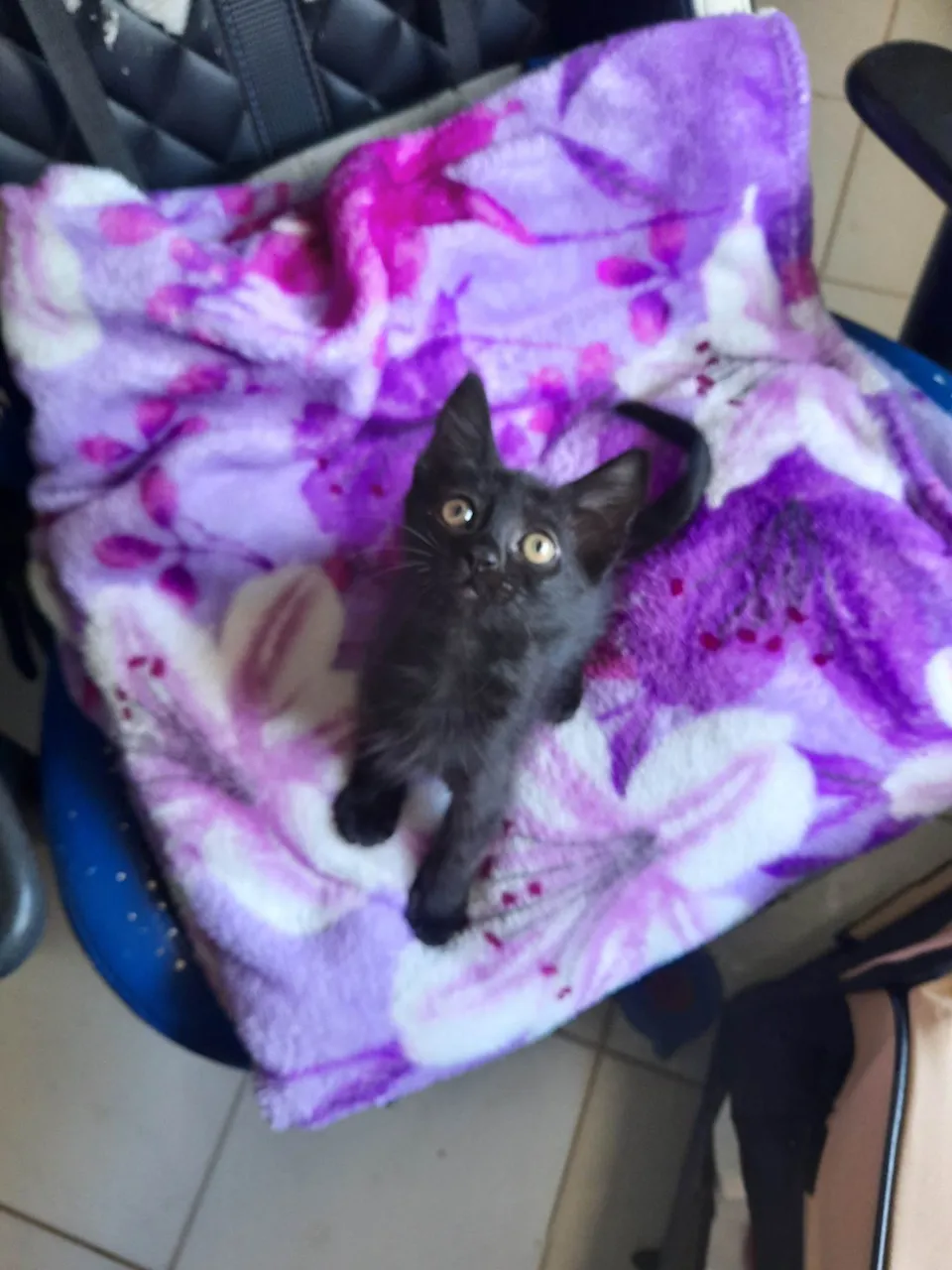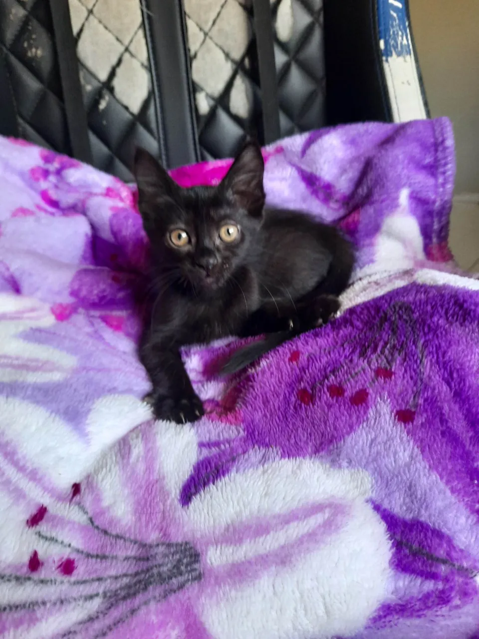 A Ravena é uma gatinha S.R D. linda e dócil, de 2 meses.Ela está em lar temporário, mas não vê a hora de encontrar a família dela!
