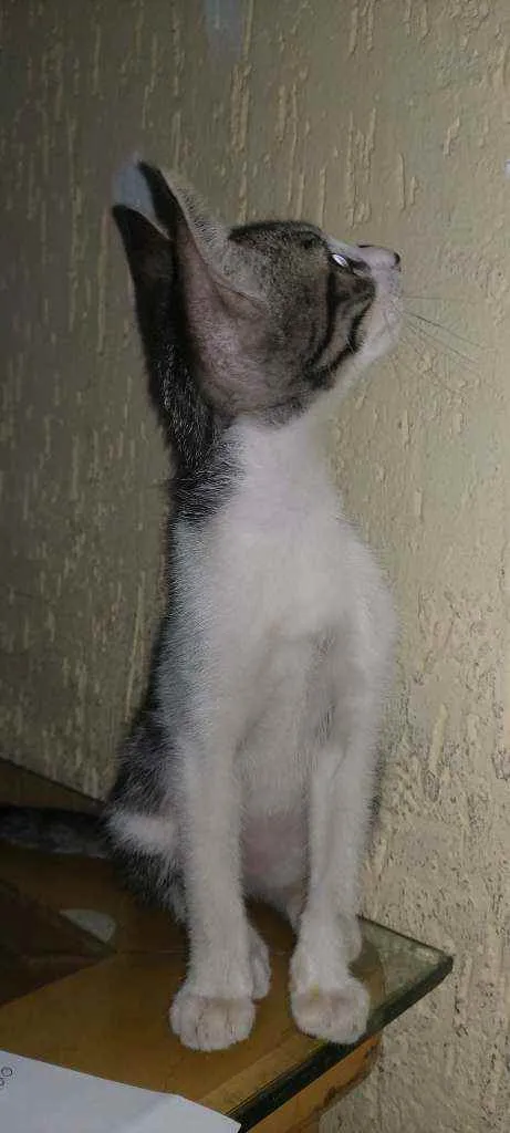 Apareceu esse gatinho lá em casa. Estou dando comida e dei remédio de verme para ele. Deve ter aproximadamente uns 3 meses. Ainda está magro e chegou com a patinha queimada mas já estou tratando. Come ração e já usa a caixinha de areia.