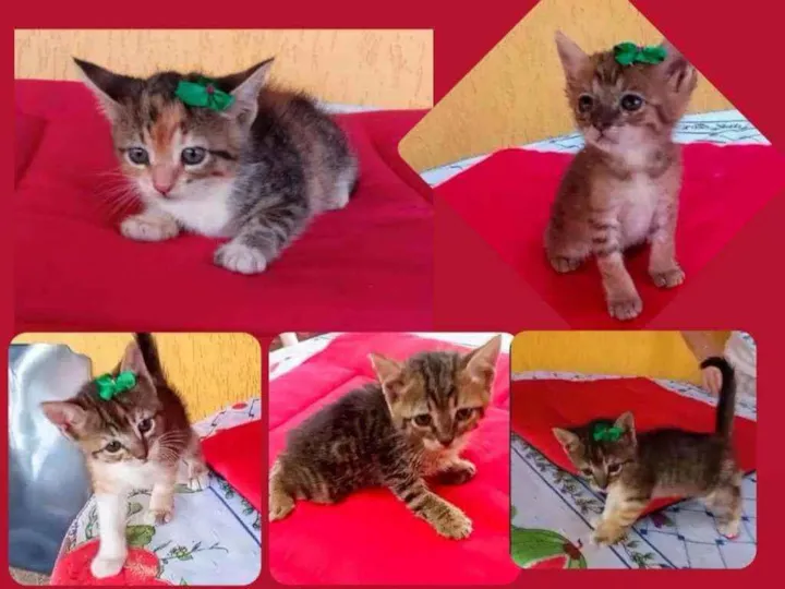 Oi pessoal, esses irmãozinhos estão em busca de um lar cheio de amor, são 4 fêmeas e 1 macho de mais ou menos 2 meses. Já comem ração e sabem usar a caixinha de areia.