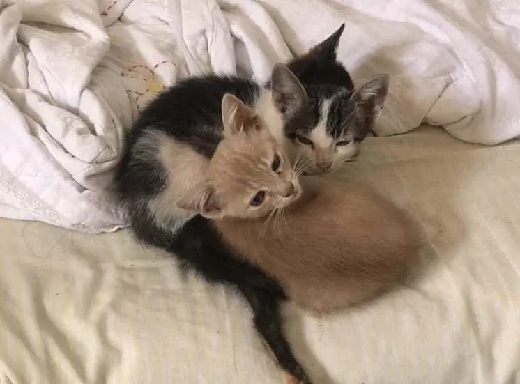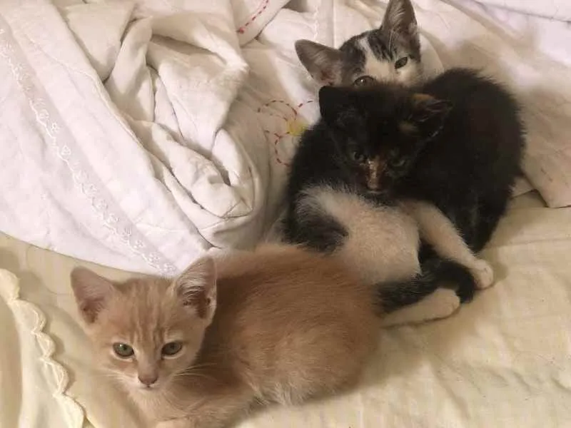Três gatinhos foram abandonados e estão sob os meus cuidados desde então.