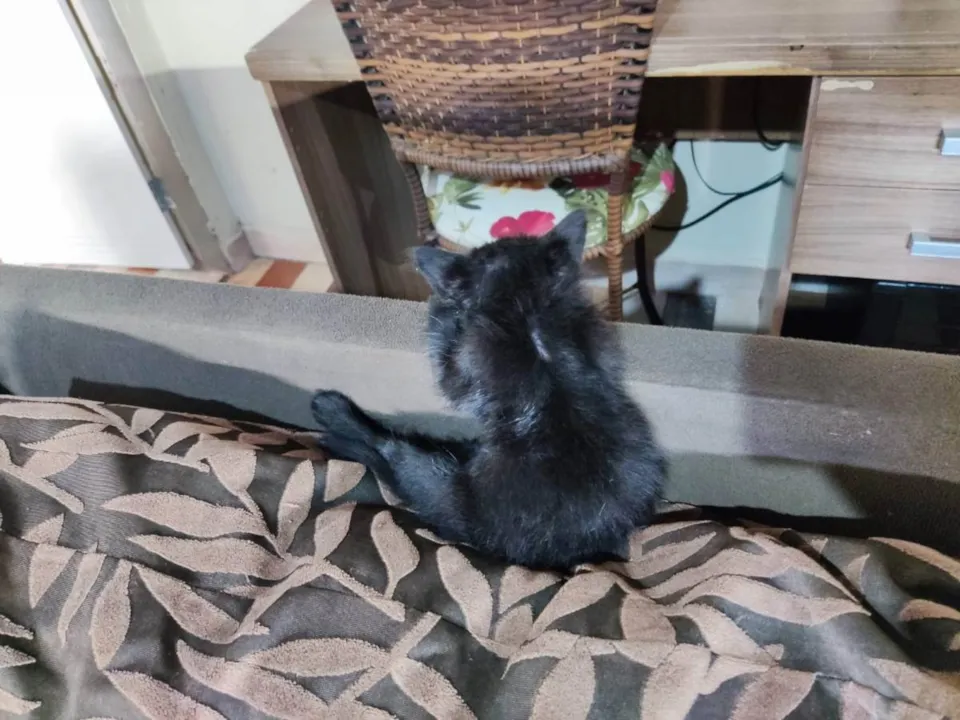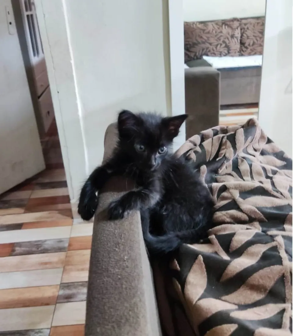 Adoção responsável desse neném fofuxo, tá com 2-3 meses, faz coco na areinha, come da raçãozinha molinha no sachê. Tomou até remedinho de verme. Ele nasceu com as bolinhas pra dentro, mas é comum, quando for castrar tem de fazer ultrassom. Mas é super saudável, vive normal, e é o mais esperto que já vi, intelectual, olha só as pose! Um amor!