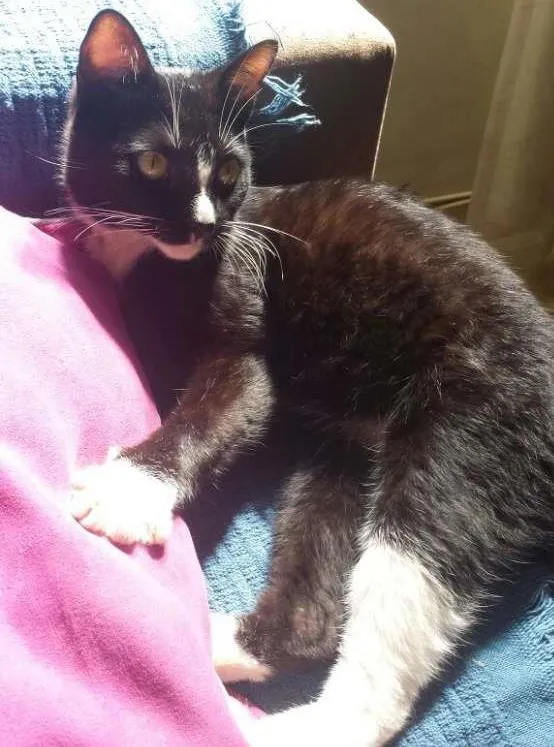Eu sou um gatinho de 10 MESES bem charmoso com essa pelagem preto e branco, sabe como é conhecido esse tipo de gatinho? Tuxedo cat, afinal parece que estamos usando smoking!!