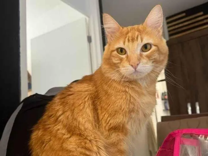 Adote o gato Sol, SRD de 3 anos e pelagem amarela. Dócil e sociável, é ideal para apartamentos e se dá bem com crianças e outros pets. Ilumine seu lar!