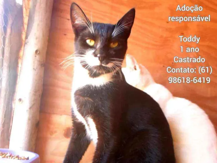 Este é o Toddy, lindo gatinho, dócil e castrado. Ele se dá bem com outros animais e com crianças. Para lares telados ou seguros, sem chance de fuga. Adoção é feita com assinatura de termo. Para adotar o Toddy, falar com Catiane no: (61) 98618-6419.