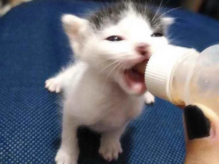 Gatinho fofo macho abandonado pela mãe, aproximadamente 2 semanas de vida, em fase de amamentação.