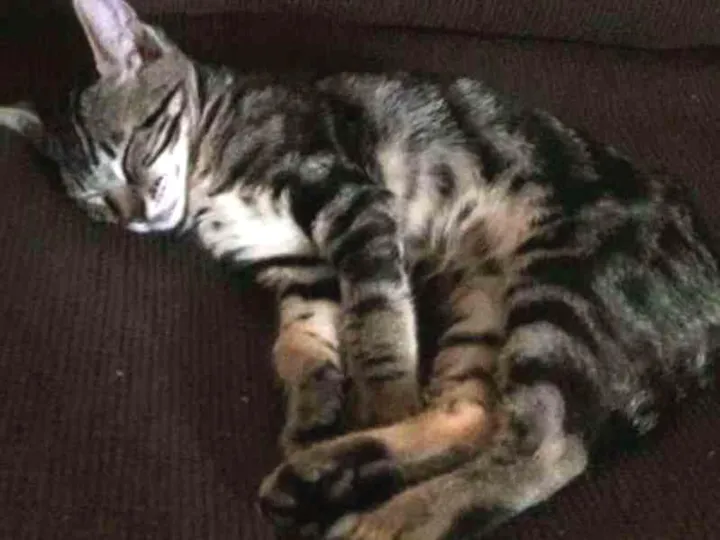 Tom é um gato de 4 meses de idade. Olho marrom claro e pelos de cor preto e marrom. Ele é um gato bem ativo e bem amoroso com os donos. Gosta muito de brincar. Já foi aplicada vacina e vermífugo. O gatinho faz cocô e xixi em caixinha de areia, nunca fez bagunça em outro local.