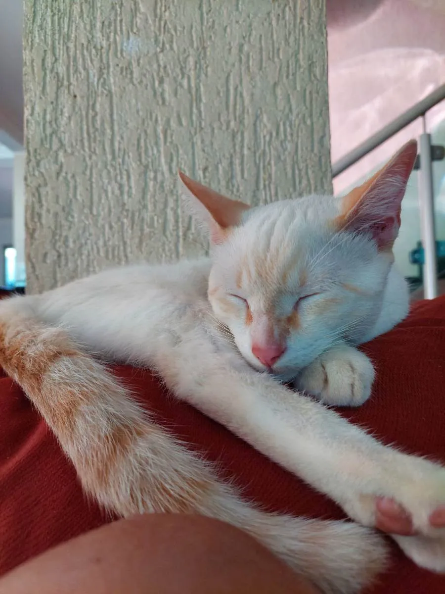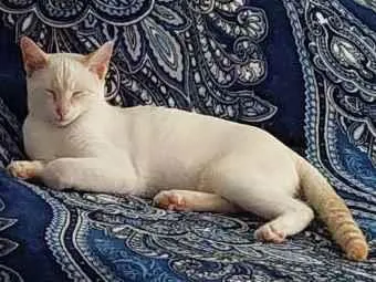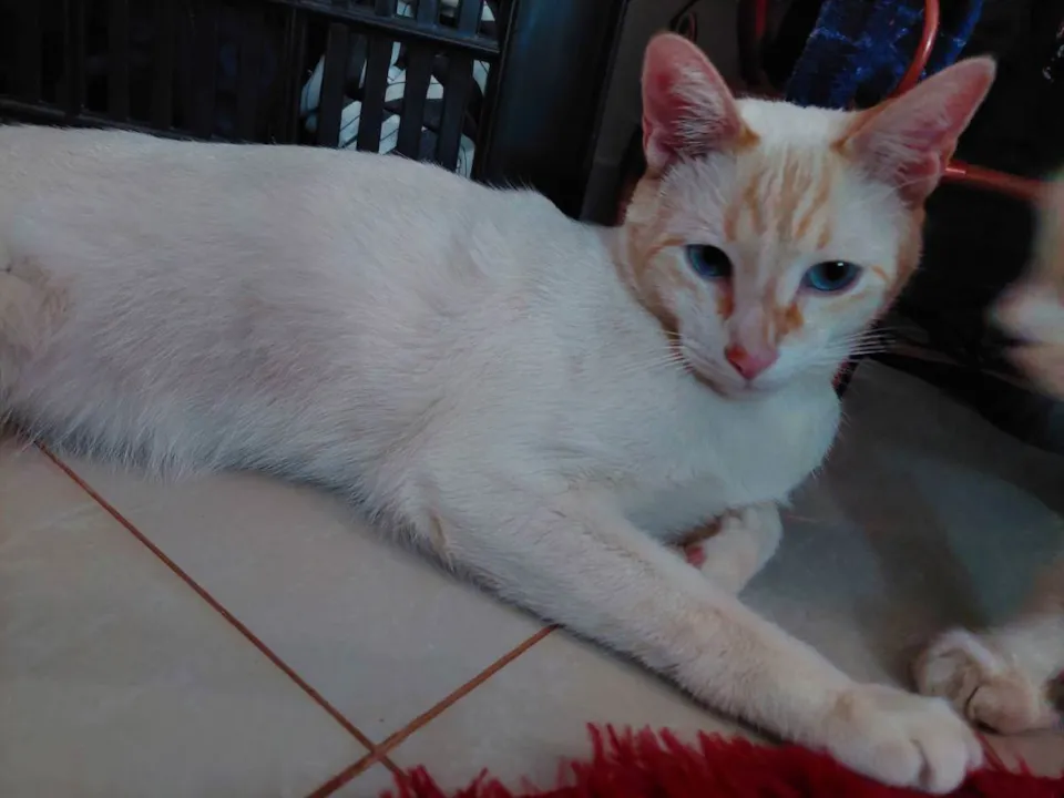 Meu gatinho está sumido desde o dia 15 de julho. Se perdeu perto da Fazenda Farjado Cocalzinho de Goiás. Ele é macho Castrado, olhos azuis, branco com listras amarelas no rosto e no rabo. Muito sapeca, carinhoso, sociável.