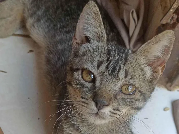 Lily, filhote de 3 meses, tem uma pequena mancha vermelha na orelha, olhos castanhos, cor rajado com alguns detalhes brancos, se perdeu na 6 da Ceilândia Norte!!