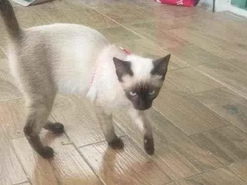 Olá. Esta gatinha é a Milú, tem 5 meses de vida. Ela pulou a janela do meu veículo sem eu perceber num sábado (20/03), final de tarde, ao lado da Boureal Tintas (QE 40, Cj. J). Ela estava com coleira peitoral vermelha e a guia era de cordões coloridos, tipo cadarço de tênis.