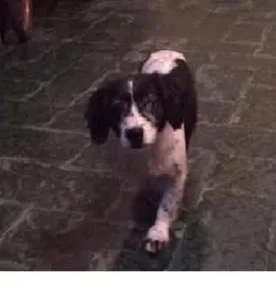 ela tem a pelagem preto/branco, e além disso tem um probleminha no olho direito, que o deixa esbranquiçado e com remela. Não é tão pequena quanto um poodle, é um pouquinho maior. Não morde e provavelmente está muito assustada.