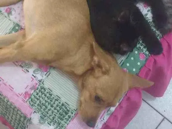 Vacinado, é meio assustado mas muito carinhoso, não morde e não fica latindo pedindo comida nas refeições, aqui em casa ele dorme na cama mas como o resgatamos da rua ele pode dormir no quintal também. É um animalzinho muito dócil mas infelizmente não conseguimos adaptar ele a rotina aqui de casa então gostaríamos de achar novos donos que cuidem bem dele e dê todo amor e carinho possível. Obrigada