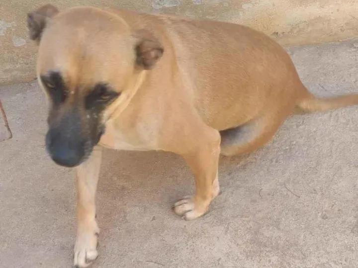 A cachorra foi abandonada. A dona mudou da casa e deixou a cachorra pra trás. Uma cadela doce e inocente.