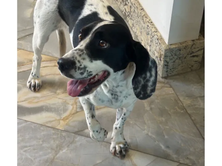 Cadelinha, encontrada perdida com a pata machucada, aparenta ter dono, pois é bem cuidada e esta limpa. Foi encontrada na noite do dia 23/12, muito assustada, com sede e fome.