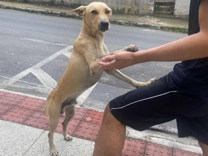 Cachorro encontrado na porta da minha casa, ele estava desnutrido e pouco machucado, estamos alimentando ele, mas ainda esta morando na rua