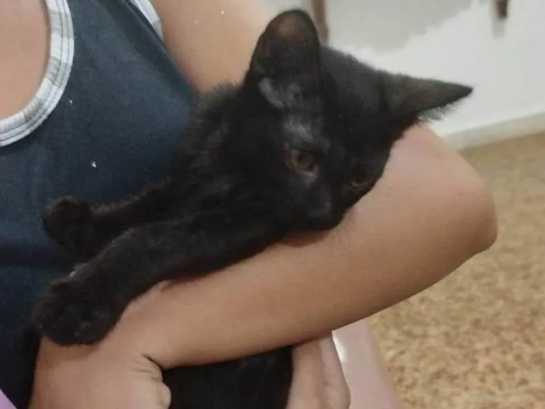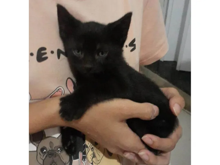 Procurando por um novo amigo? Conheça o Bartolomeu (ou Bart para os íntimos), um lindo gatinho macho da raça SRD-ViraLata, com uma pelagem preta brilhante e olhos curiosos. Com menos de 2 meses de idade, Bart já é um verdadeiro charme e está pronto para encontrar um lar amoroso.