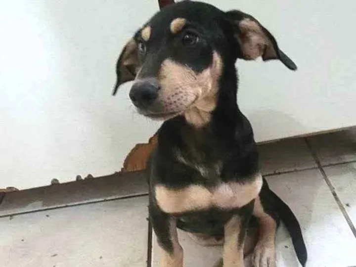 Olá, esse menininho apareceu na casa de meus pais na BR 101 no Shell, eles não tem como mantê-lo, pois é um quintal aberto e há riscos dele ser atropelado na BR.