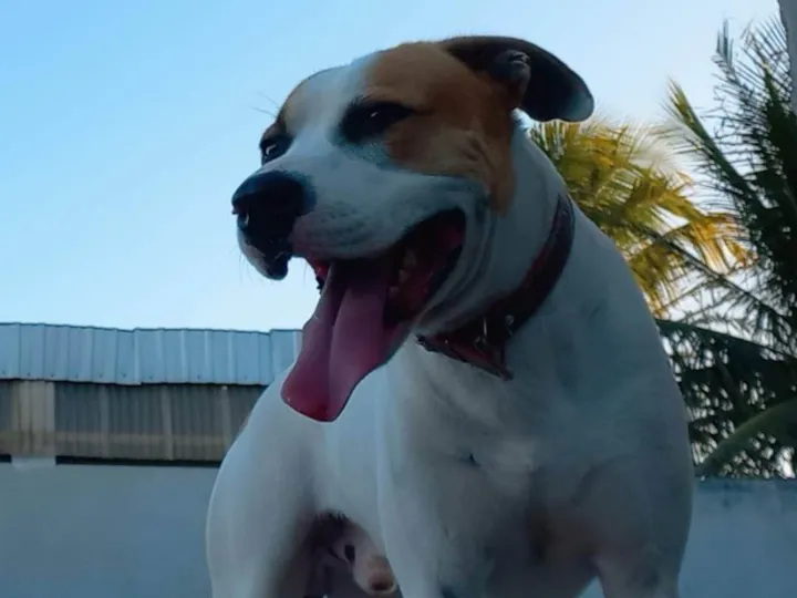 Conheça o Nolan, um pit bull macho de um ano, com uma bela pelagem branca. Ele está à procura de um novo lar amoroso e responsável. Nolan é um cão de porte médio, que já está vacinado e vermifugado. Apesar de ter um temperamento agressivo, ele pode se adaptar bem a uma casa com quintal, onde possa gastar sua energia e receber o treinamento necessário.