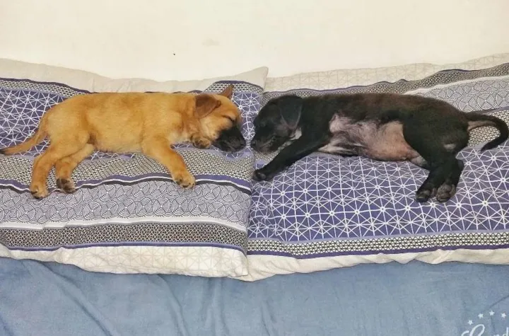 Achamos esses dois filhotes , e como moramos em apartamento não podemos ficar com os mesmos . Levamos ao veterinário para sabermos a raça e ele nos disse que eles são misturados assim como está na descrição . Eles tem um pouco mais de dois meses , e a quase um mês estão conosco . Estão sobre uso de fraudas para que não façam as necessidades dentro do AP . Só doamos os dois juntos .