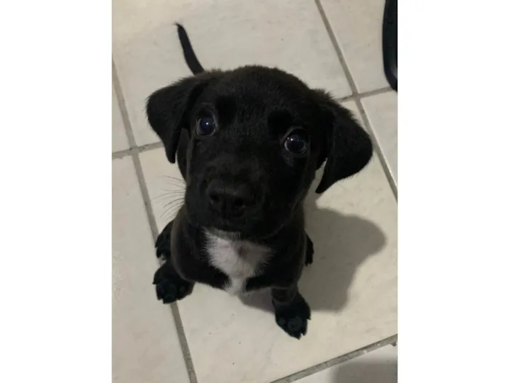 Esta é a Aika, uma adorável cadelinha SRD (vira-lata) de pelagem preta e idade entre 3 e 4 meses. Com um porte médio, ela é a companhia perfeita para quem busca um amigo fiel e carinhoso!