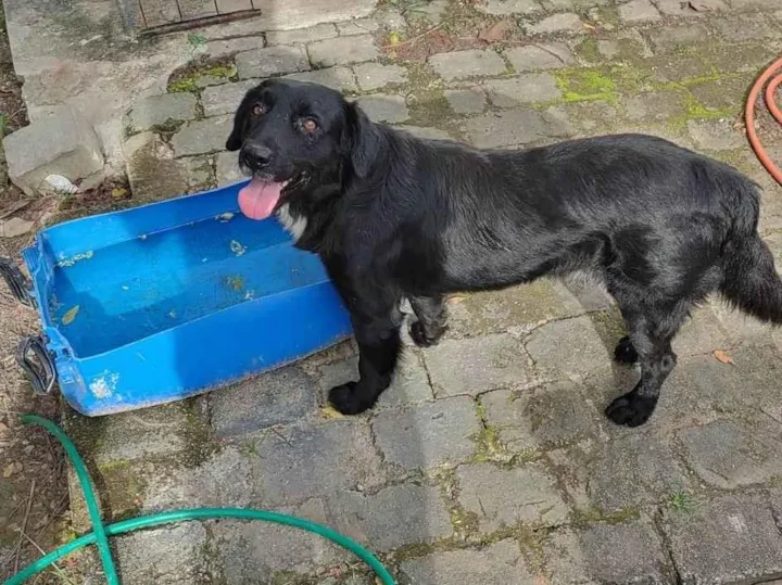 Loki é um cachorro preto com pelagem solta do tipo bordercollie, ele é muito animado e alegre, corre bastante.