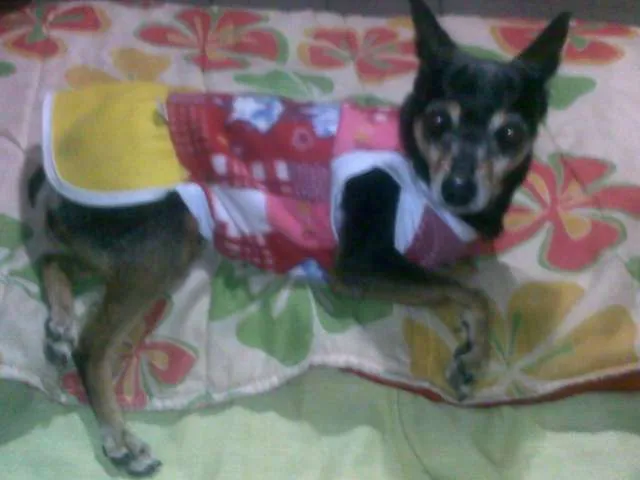 Cadelinha com 15 anos, pelagem preta com patas e pescoço caramelo. Possui uma verruga próximo à cauda. Estava em tratamento quando desapareceu em 21/03/2013.
