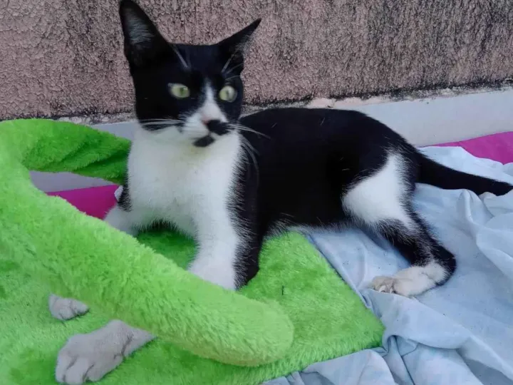 Frajola é um gatinho pego das ruas, alimento ele e dou remedio de pulga e sarna. Não castrado e não vacinado. Animal amigável e muito carinho, ama atenção e brincar. Muito amigo do Azul (outro animal que cuidamos)