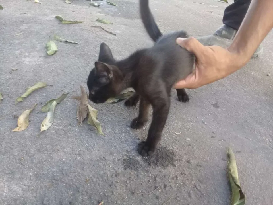 Abandonaram estes gatinhos na rua. Duas fêmeas e um macho.