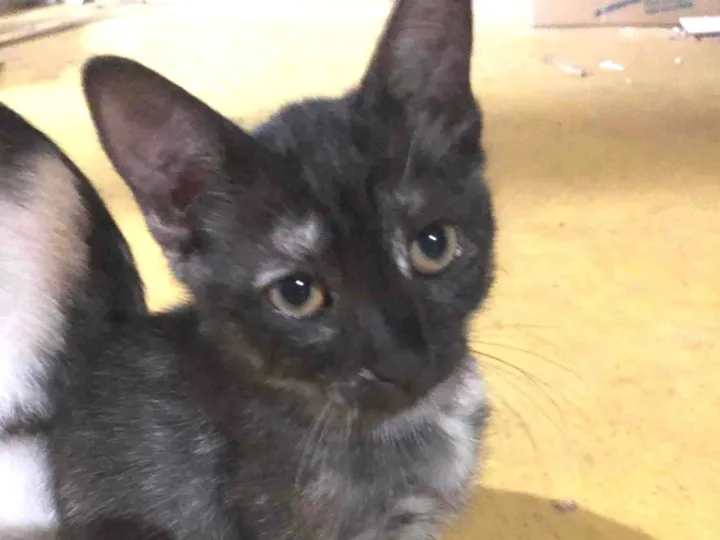 A Sissi é um amor. Um rajado mistura de cinza branco e preto na pelagem. Muito linda ela.