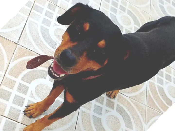Dê um lar para Não tem, na coleira que está no pescoço !