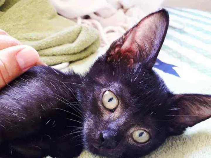 Deve ter um mês de vida. Come ração seca e sachet também, e já sabe usar caixinha de areia.