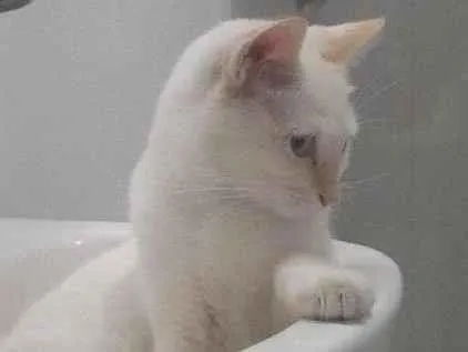 Gata branca, com rabinho amarelo, muito carinhosa, estava de coleira no pescoço. Sumiu do meu apartamento aqui em santos domont, encima do restaurante do Valdir. Na rua do bar do Zé.