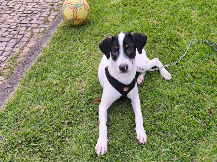 Animal de porte médio, muito ativo, sem muito espaço dentro de casa e/ou quintal. Alegre, brincalhão, mas necessita de um espaço maior. Animal adquirido em feiras de adoção, garantiram que não cresceria...