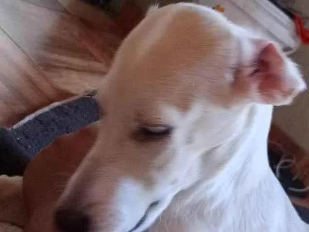 de fazer novos amigos. Ela é uma SRD-Vira-lata de pelagem branca e porte grande, com 1 ano de idade e um temperamento que mistura agressividade, brincadeira, sociabilidade e independência.