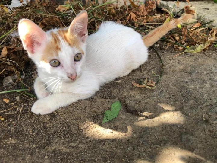 Filhote de gato macho, na cor branca com rajados laranja.Muito docil, gosta de ficar pertinho do dono. Nascido em 22/5/24, ja come ração e sabe usar a caixa de areia