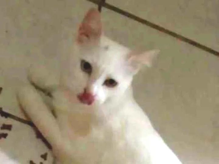 Muito dócil branquinho com um olho castanho e o outro azul.