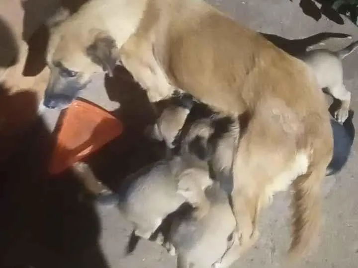A cadelinha ficou depois que a dona se mudouApós isso ela pariu seis filhotinhos Eles estão sem lar, e as chuvas se aproximamEspero encontrar logo um lar para elesEstou preocupada porque até encontrarem uma casa, estão vivendo na rua E corre risco de carros baterem
