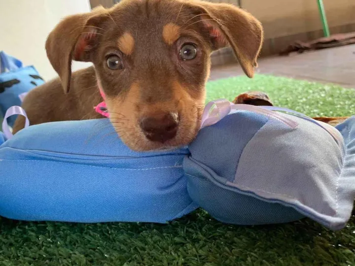 A Mel foi resgatada na quinta-feira 06-04, no meio da chuva, na friagem, com pneumonia, conjuntivite e anemia. Ela foi internada, tratada e ainda está tomando os remedinhos para ficar bem por completo. Ela precisa ser adotada por pessoas que possam continuar dando os remedios pra ela. Ela será doada com os remédios e já vermifugada. É muito brincalhona, dócil e convive bem com outros animais.