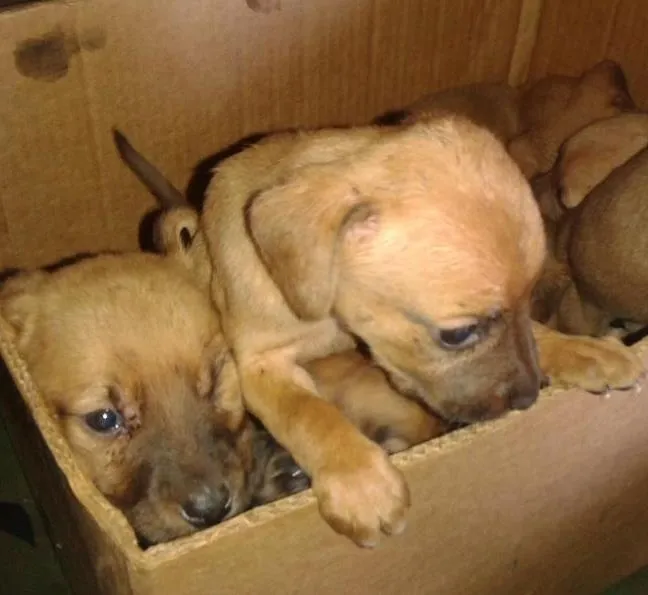 São 7 filhotes sendo um só macho e todos maron com a boca preta foram abandonados em uma caixa e estão em um local impróprio e quente precisam de um local maior