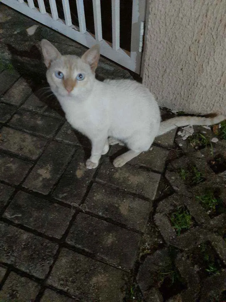 Gato fugiu do Pet Shop Hane'i, no setor Boa Vista quando ia para uma consulta. Ele é dócil, mas não está acostumado com rua. Ficava dentro de um condomínio. É branco dos olhos azuis. Atende a um barulhinho que eu fazia com a boca para chama-lo. Ele é de Goiânia e ia ser adotado pela moça que deixou ele fugir quando levou para o pet. shop. Recompenso e vou busca-lo onde encontrarem ele.