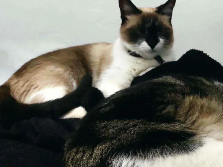 Branca dos olhos azuis costas caramelada patinha rosa na palma estava de colera preta d couro