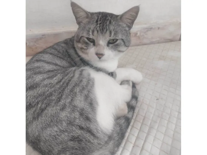 Teimoso ( porque chegou e não foi mais embora) e Dengoso porque implora por atenção e carinho. Grande, saudável, vacinado em 2023. Não tenho condições de cuidar porque estou com uma doença degenerativa e perda da visão progressiva. Preciso desesperadamente de alguém para cuidar dele, pois eu não quero que fique sem teto novamente.
