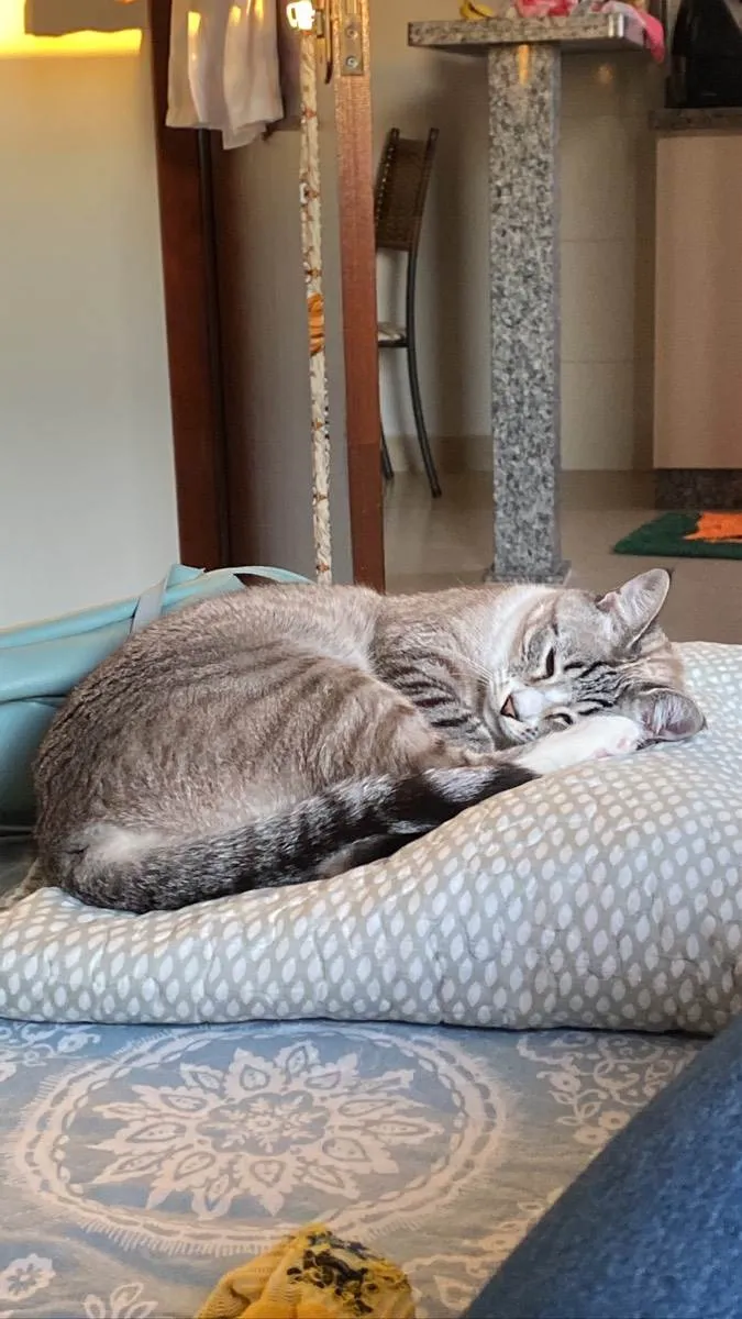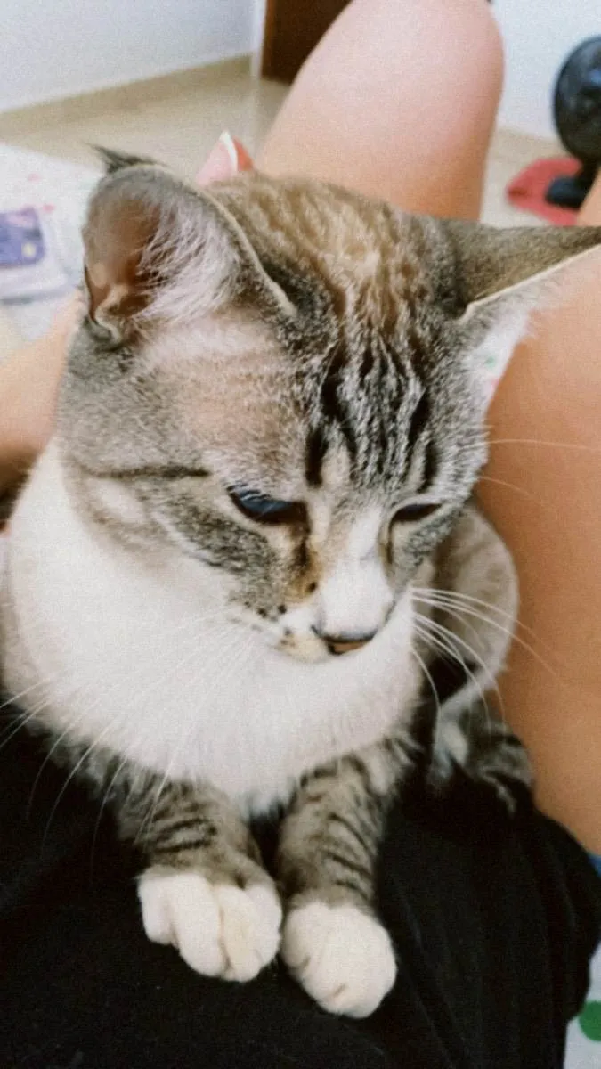 É uma gata muito tranquila e não da trabalho, gosta de carinho mas na hora que ela quer. Normalmente ela sobe no colo ou fica se esfregando para pedir carinho, não gosta muito que pega ela no colo. Sabe usar a caixinha de areia e a caixa de transporte.